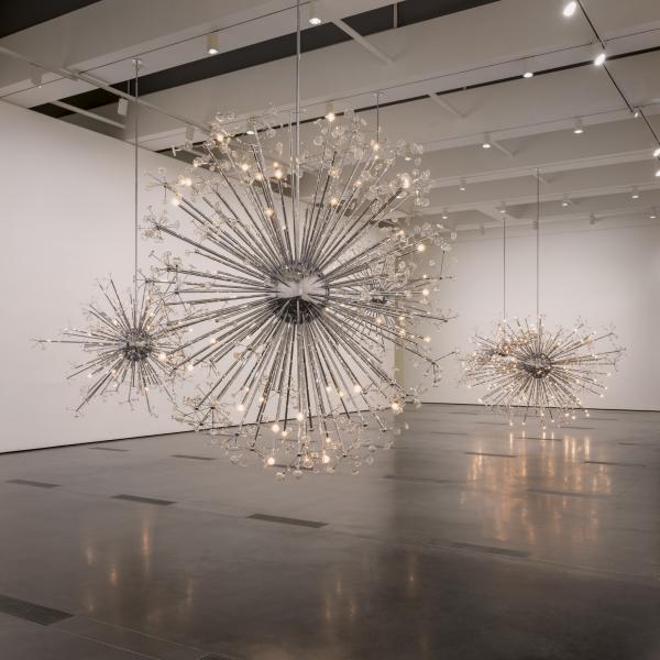 In the middle of the Resnick Pavilion, you can walk around Josiah McElheny: Island Universe, a large installation of lighted sculptures hanging from the ceiling. They represent the multiverse, a concept you probably already know about that you can explain to your parents.