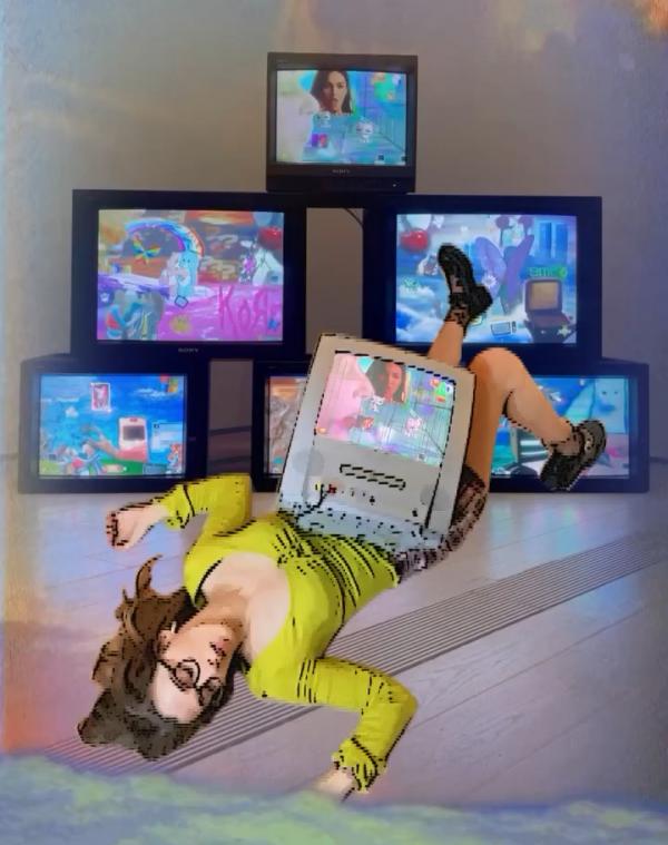 I originally made this piece for a 2022 show with John de Leon Martin at Human Resources, curated by John Bertle. I visited HR and they had a bunch of CRT TVs for me to use. I turned one on and it made that loud metallic BWOMP sound with a flash of white light that exploded from the center. That sound was so nostalgic—it transported me back to the Web2 aesthetics of my childhood and adolescence that continue to influence my practice. Social media and Web2 were rising during the early 2000s, alongside reality TV. I graduated high school in 2007, and the imagery in these collages—pixel art, screensavers, glitches, internet cats, and nostalgic brands like Limewire—draws from that era. The technical approach to making these collage videos exemplifies a copy-and-paste technique. Combining images that already exist and carry the weight of their circulation through online image economies to make new meaning within the new worlds I create.