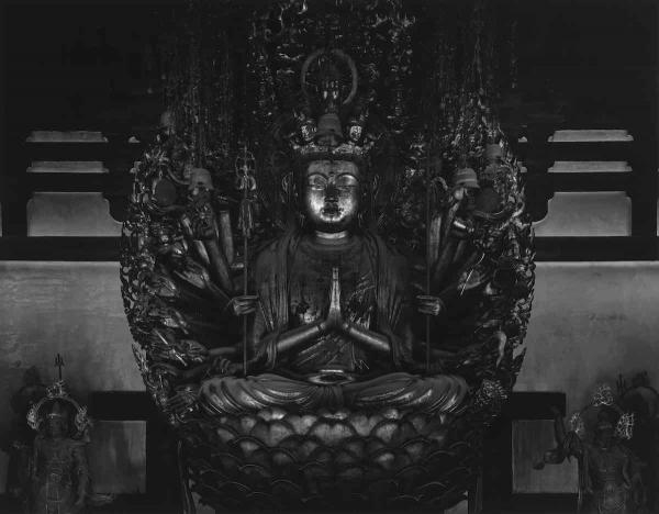 Sea of Buddha is a series of 49 photographs depicting 1,001 Buddhist statues at a temple commonly known as Sanjūsangendō (Hall of Thirty-three Bays) in Kyoto. In this work, Japanese artist Hiroshi Sugimoto captures the statues as religious icons and embodiments of time, memory, and transcendence. Sugimoto views the collective presence of these seemingly identical figures as a form of “conceptual art” from 12th-century Japan