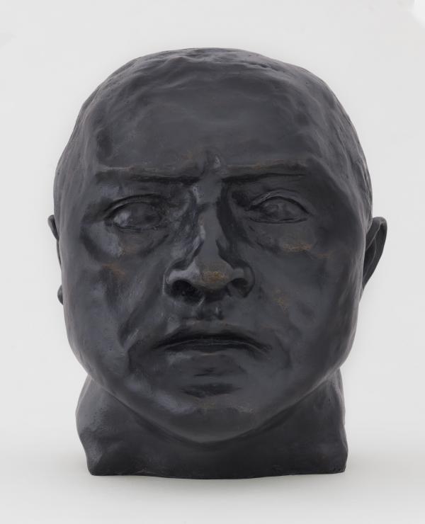 Beckmann created over 80 traditional self-portraits—more than any artist since Rembrandt—and tucked countless images of himself into his paintings and prints. He modeled this larger than life-size Self-Portrait in his studio in Berlin on the eve of his departure from Germany. Beckmann depicts his highly recognizable visage—large, round head, receding hairline, and intensely focused eyes—which confidently commands the viewer’s attention. The broad, expressive mouth, its corners turned down, seems poised to speak a weighty truth. The eyes, coolly fixed on the distance, reveal the reserved gaze of an observer, not of a man of action. The sculpture’s heft alone testifies to a vital force that is hard to suppress. Of his eight sculptures, Self-Portrait is the most well-known.