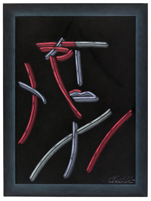 To accompany Before You Now, LACMA has produced a series of video portraits introducing just a few of the artists and their works. In this video, artist Lili Lakich—who co-founded the Museum of Neon Art in Los Angeles in 1981—discusses her practice of working with neon lights and tells us about her drawing Self-Portrait with Sneer (1976). Lakich creates sketches before she constructs her sculptural works, many of which feature self-portraiture, and this bold drawing anticipates the design of the glowing neon tubes of its corresponding sculpture.
