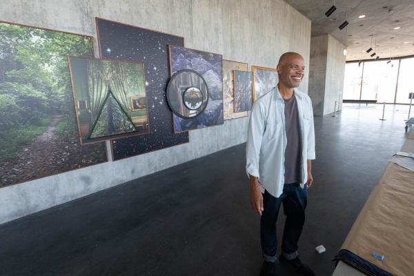 Alongside the scene from Ghana are other photos by Gray that portray, among other things, artwork from Palazzo Pitti in Florence, natural scenery from a fjord in Norway, and African sculptures located in Belgium but originally from the Congo, once the site of colonial horrors led by Belgian King Leopold II. On the right side of the work is a portrait of author Octavia Butler, who lends her name to the work. “I had this photo session with her in the '90s,” Gray said. “And I just remember this photograph because it’s like she’s asking the viewer a question like—what do you think? And so it ends with the gold-leaf frame to really show the value of Octavia.” Although the celebration of Octavia is evident, her expression is ambiguous, and the multifaceted nature of the work means there are no easy answers about the rest of the content.