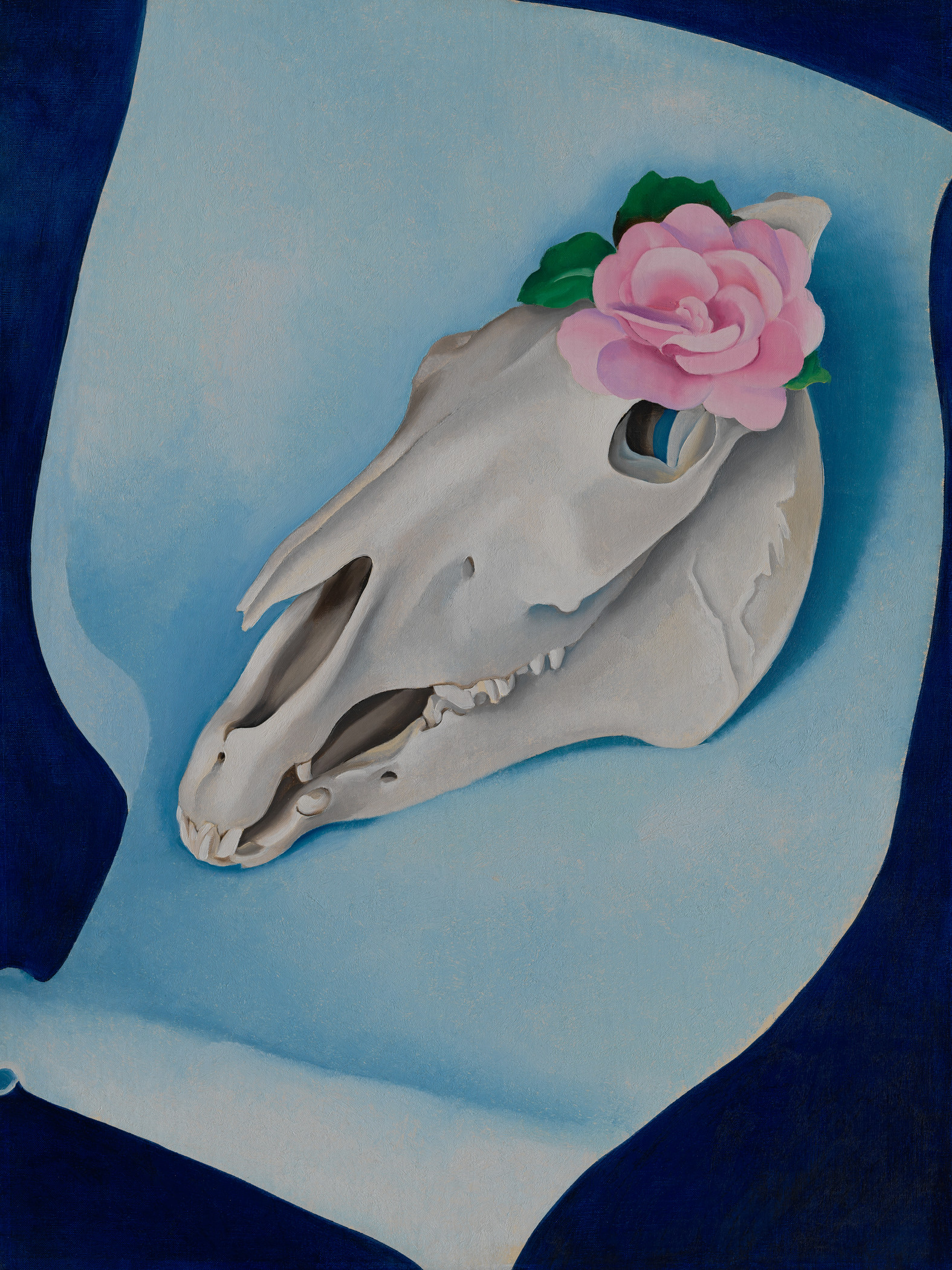 Georgia O'Keeffe, Horse's Skull with Pink Rose, 1931, Los Angeles County Museum of Art, gift of the Georgia O'Keeffe Foundation, © Museum Associates/LACMA, photo © Museum Associates/LACMA