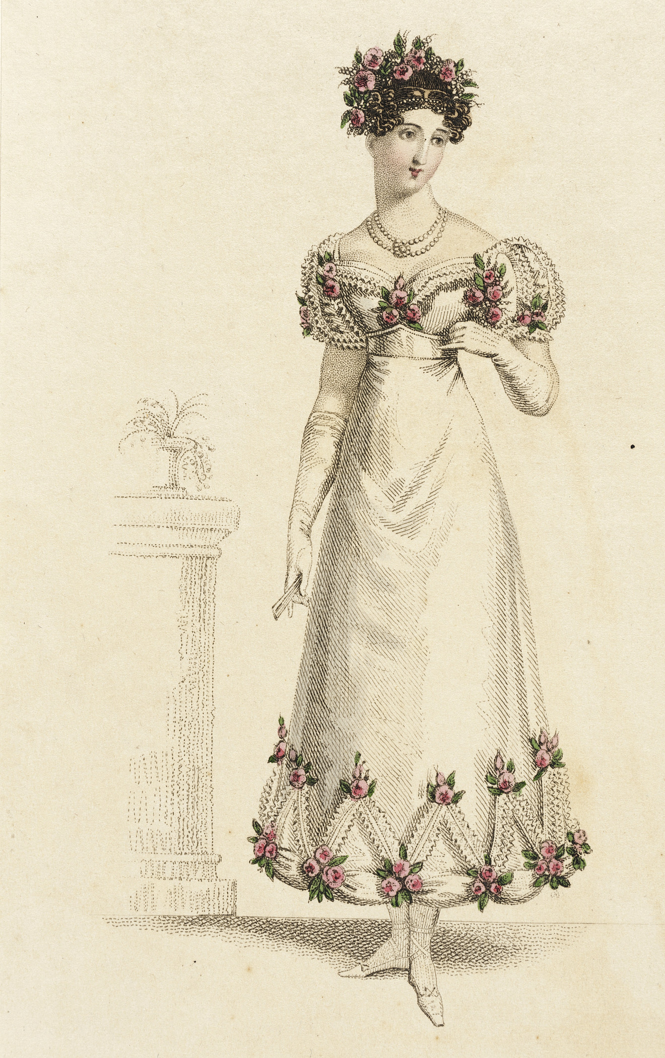John Bell, Fashion Plate, 'Parisian Ball Dress' for 'La Belle Assemblée', May 1, 1820, Los Angeles County Museum of Art, gift of Dr. and Mrs. Gerald Labiner, photo © Museum Associates/LACMA