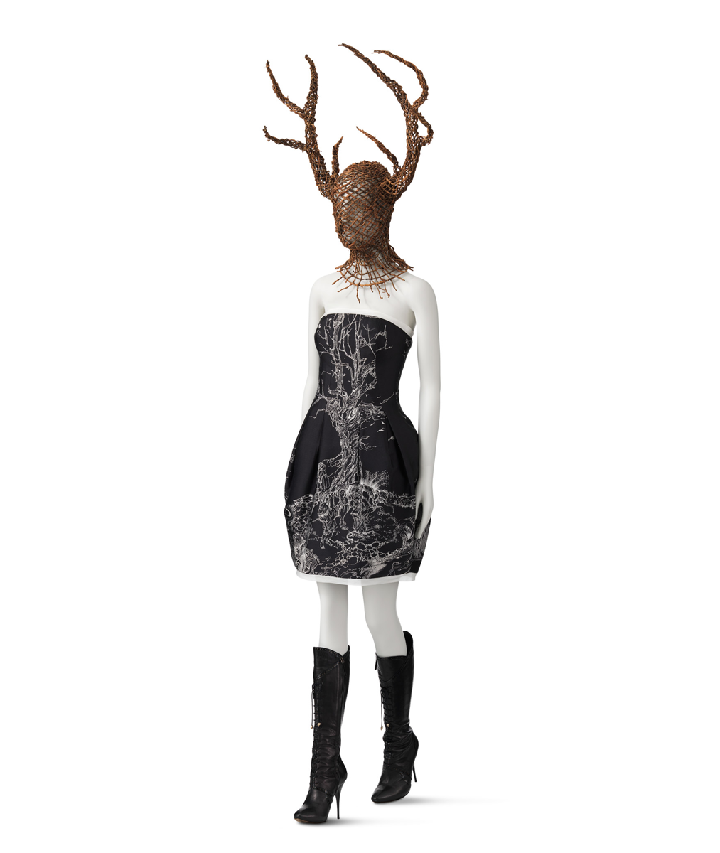 Alexander McQueen, Woman's Ensemble from The Girl Who Lived in a Tree collection, Fall/Winter 2008–09, Los Angeles County Museum of Art, gift from the Collection of Regina J. Drucker, Headpiece by Michael Schmidt, photo © Museum Associates/LACMA
