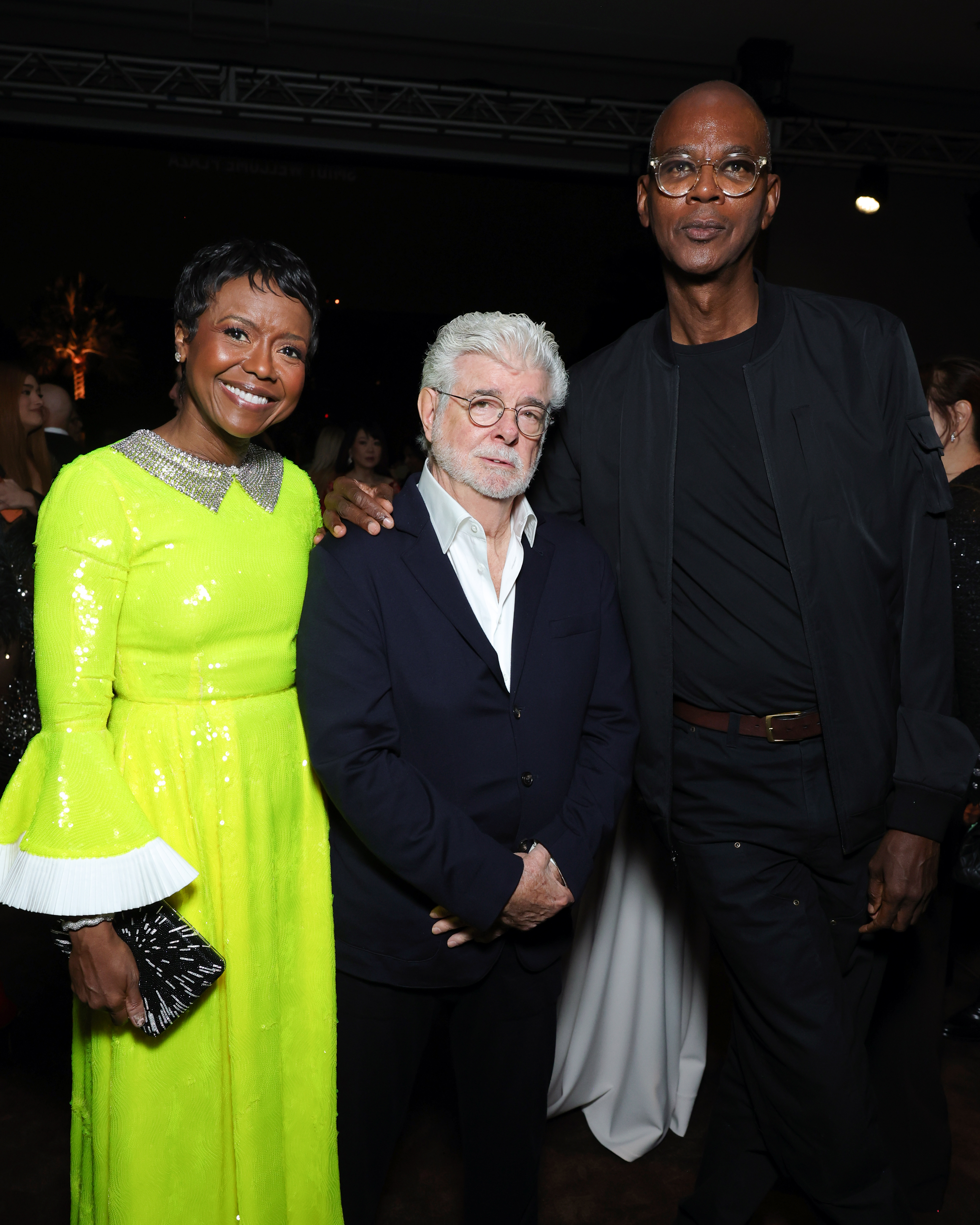 LACMA trustee Mellody Hobson and 2017 Art+Film Gala Honorees George Lucas and Mark Bradford, photo by Stefanie Keenan/Getty Images for LACMA