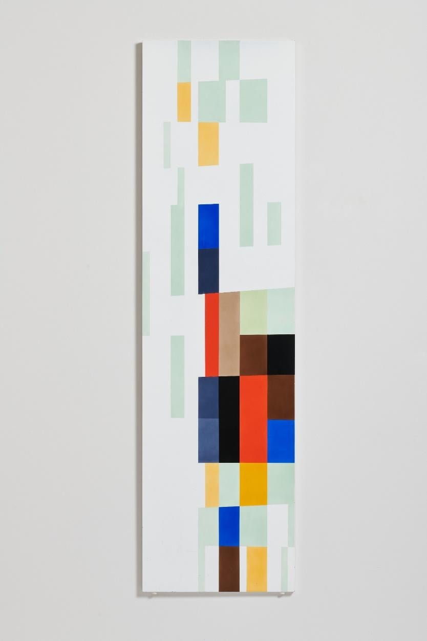 Painted with Duco, a petroleum-based lacquer primarily used for cars, these glossy panels are a nod to the oil that impelled Venezuela’s leap to modernity in the mid-20th century. Tablón 32 is meticulously conceived through the repetition of precise modules of color that produce a visual vibration and elicit an emotional response. For me, the downward movement of forms evokes the mesmerizing sensation of rainfall, indirectly connecting the work with Venezuela’s venerable tradition of modern landscape painting.