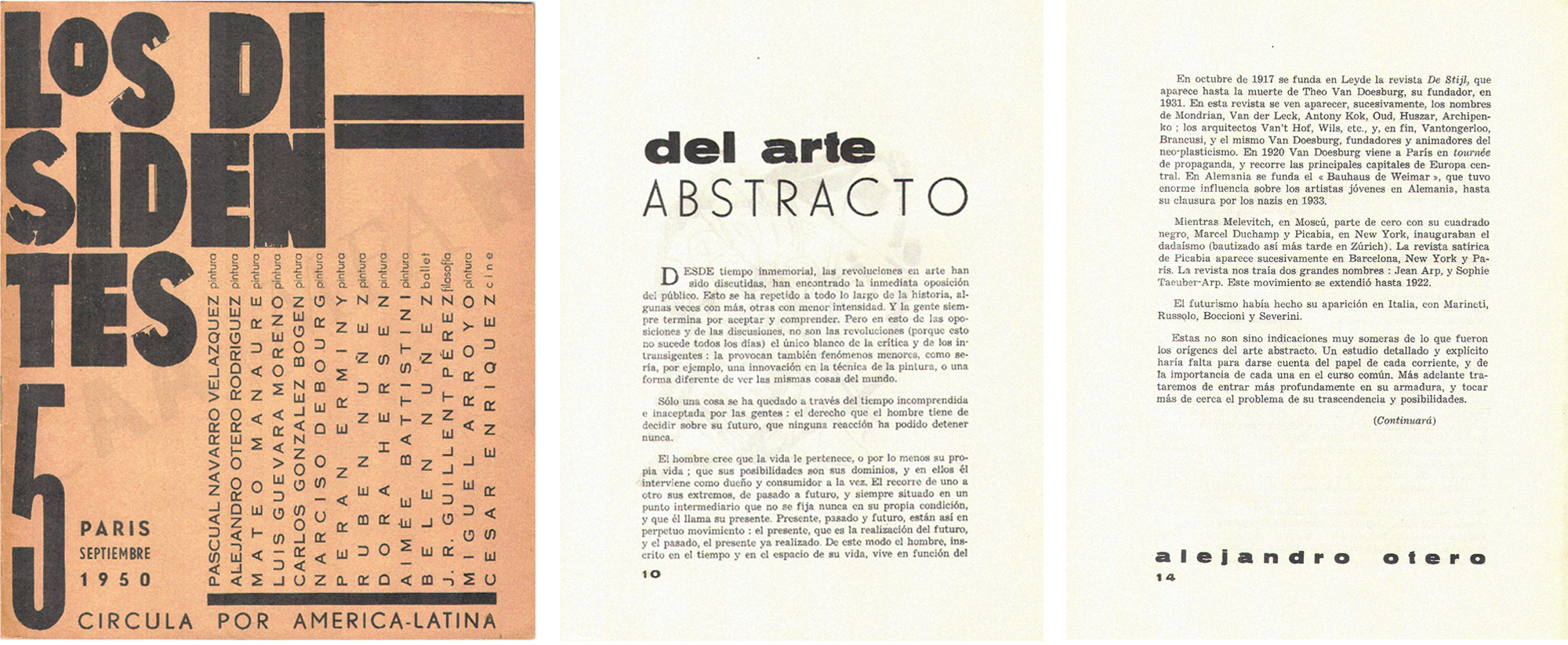 Eager for change, in 1950 Otero cofounded the group Los Disidentes (The Dissidents) alongside fellow Venezuelan expatriate artists and intellectuals. In their exhibitions and eponymous magazine, the group advocated for the introduction of geometric abstraction and international modernism in Venezuela. By the time Otero returned to Caracas in 1952, his country was on the brink of massive transformation, driven by the petroleum boom that transformed Venezuela into the richest country of the region.